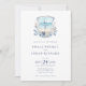 Cette élégante faire-part de mariage côtière dispose d'une crête de mariage de plage aquarelle avec initiales monogrammes de la mariée et du marié, et la date mariage sur la bannière de la crête.