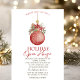 Boule de Noël rouge aquarelle sur arrière - plan blanc. Ces belles invitations de Noël sont parfaites pour les invitations à des dîners de Noël, les invitations à des échanges de cadeaux de Noël, les collectes de fonds de Noël, les invitations à des fêtes de Noël, et d'autres événements qui ont lieu pendant le mois de décembre. Il vous suffit d'utiliser les champs modèle pour ajouter vos propres informations d'événement.