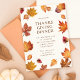 Cette invitation à la fête de Thanksgiving d'inspiration automnale avec des feuilles de chute d'aquarelle parsemées autour.