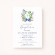 Invitation Watercolor Foliage Wreath Blue Bow Baptism