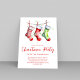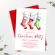 Ce design comprend une carte postale d'invitation de Noël, avec un design d'aquarelle festive, un design traditionnel élégant, avec un style minimaliste moderne, une typographie de script de calligraphie simple, une invitation traditionnelle de fête de vacances, avec des bas blancs rouges et verts mignons