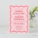 Célébrez votre amour avec ces invitations de mariage personnalisées Wavy Valentine rouge et rose, parfait pour les couples à la recherche d'invitations de mariage uniques avec une ambiance amusante et mariage. Ces invitations éclectiques à des mariages mêlent un thème mariage rouge et rose vif, ce qui les rend idéales pour un mariage de Saint-Valentin. Vous recherchez des idées d'invitations de mariage colorées et décalées ? Elles sont idéales pour un thème mariage rose et rouge.