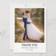 Simple modern photo wedding thank you card with personalized note. This elegant couple template allows you to easily upload your own photo, add your names, and customize your thank you message for friends and family.