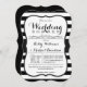Elégant, à rayures blanches et noires, à rayures motifs wedding shower invitation avec des polices noires et des coeurs blancs sur le dos. Parfait invitation classe toute l'année pour le printemps, l'été, l'automne ou fiançailles d'hiver, couples wedding showers. Invitation en forme de crochet pour un look vintage élégant.