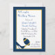 Amusant couple invitation wedding shower faite dans un bleu foncé, un bleu clair, jaune et blanc. Graphiques d'un cadre bleu et jaune, autour d'une zone de texte blanche, avec un talon bleu stylisé donnant un pied de football bleu et jaune. Le texte bleu est entièrement personnalisable pour personnaliser votre wedding shower. Idéal pour le couple de supporters de football.
