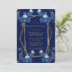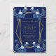 Le design présente un élément floral imprimé de couleur dans les tons marine, bleu et or. Textures de marine et de toile bleue avec faux papillon d'or et fleurs de pivoines avec script de calligraphie or ou écriture de type. Idéal pour vos célébrations mariages !
