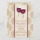 Ces invitations en verre décorées d'un monogramme élégantes de vin rouge avec un ornement et un coeur de fantaisie d'or modèlent l'arrière - plan et Bourgogne et équilibre imprimé de regard de ruban coloré par vin avec piquer de regard d'or est parfait pour un échantillon de vin, des couples orientés de cocktail ou de vignoble épousant ou une douche de fiançailles. Ajoutez les initiales des jeunes mariés pour être sur chaque verre. © Chrissy H. Studios, LLC d'illustration. Tous droits réservés.