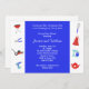 Invitation les clients pour un couple wedding shower dans le style avec cette invitation à la douche nuptiale moderne et amusante. Cette invitation bleue, rouge et aqua présente des cadeaux de mariée et des cadeaux et cadeaux de mariée pour la maison.