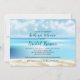 Un océan bleu doux s'élance contre une plage de sable sur cette invitation qui peut être utilisée pour une plage ou un mariage ou un wedding shower sur le thème de l'océan, un mariage de destination tropicale, ou toute célébration sur le thème de la plage. Des lumières de fées sont enfilées le long du dessus de l'image. Disponible avec des produits correspondants.