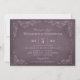 Cette carte d'invitation wedding shower formelle au design vintage de style étiquette de vin. Des croquis rustiques dessinés à la main de feuilles de vigne encadrent les détails importants. Une conception simple et florissante avec la date de l'événement apparaît à l'envers. Plum Dusty / aubergine / aubergine pourpre avec des couleurs lavande.