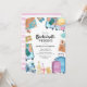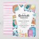 Jolies invitations de vacances pour enterrement de vie de jeune fille avec une sélection d'objets de voyage aquarelle comprenant des valises, un appareil photo, une carte, etc., et un modèle d'enterrement de vie de jeune fille élégant facile à personnaliser.