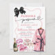 Invitation au week-end d'enterrement de vie de jeune fille Pyjamas et Prosecco, Invitation au week-end d'enterrement de vie de jeune fille avec nœud coquet noir, Invitation à la fête Pyjamas et Prosecco, Invitation au programme du week-end d'enterrement de vie de jeune fille
