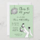 Invitation Retro griffé Anniversaire avec jambes de boule disco avec talons et vin.