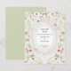 This elegant wedding save the date features a soft, romantic design with a delicate vintage feel. A light, textured background is framed by an ornate oval border in muted gold, accented with graceful scrollwork and a subtle bow detail at the top. Surrounding the frame is a charming garden-inspired motif with soft greenery, tiny blossoms, strawberries, butterflies, and ladybugs, adding a whimsical, nature-inspired touch. The refined serif typography is centered within the frame, creating a timeless and sophisticated announcement that blends classic elegance with gentle botanical beauty.