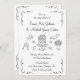 Whimsical et romantique, ce faire-part de mariage dessiné à la main présente de charmantes illustrations noires d'icônes de jour de mariage, dont un gâteau à plusieurs niveaux, des fleurs délicates, un doux cou, une colombe gracieuse et des anneaux mariages classiques. Associé à un script manuscrit ludique et à des accents floraux, ce design artistique en noir et blanc donne un ton léger mais élégant. Parfait pour les couples à la recherche d'un moyen unique, créatif et inoubliable pour les proches invitations de célébrer leur grand jour.