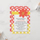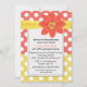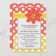 Jolie invitation de douche nuptiale faite en pois mandarin et blanc et pois jaune et blanc comme arrière - plan. Une zone de texte en relief blanc, au centre, est décorée en haut avec un ruban jaune et une fleur de ruban orange, avec un coeur jaune. Le texte en orange et gris est prêt à être personnalisé pour votre événement. Jolie invitation que la mariée chérira.