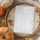Ce design est une interprétation moderne d'un classique de la douche nuptiale - Quelque chose de bleu avant moi. Ici avec une torsion automne - dessiné à la main des illustrations de style doodle citrouille, feuille, glands et baies. La bordure en ruban ondulé donne un coup de fouet supplémentaire. Toutes les couleurs de tous les éléments peuvent être customisées (arrière - plan, polices, feuille, etc. et bordure). Toutes les oeuvres de cette collection d'invitation sont ma propre oeuvre originale.