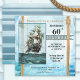 Une invitation fantaisiste à la fête d'anniversaire avec un thème voile ou voilier avec un navire et des cordes vintages. Les textes stylisés et l'arrière - plan de drapeau se trouvent sur des calques séparés et vous pouvez supprimer l'icône de l'oeil (dans les options de personnalisation supplémentaires) pour les désactiver si vous préférez les textes personnalisés.