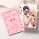 Celebrate your engagement with this charming pink party invitation featuring a playful red wavy frame edges, whimsical hearts, and festive illustrated margarita cocktail glasses adorned with coquette bows. The bold red line art and playful script lettering create a fun, romantic vibe that perfectly suits a joyful engagement celebration. The back of the card includes space for a full photo—ideal for showcasing your favorite engagement portrait or a candid couple moment. Personalize all wording, names, event details, and the back photo in Zazzle’s easy-to-use editor to create a design that feels uniquely yours.