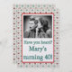 Une perle de 5" x 7" avec une vintage image en noir et blanc des années 1940 de deux femmes partageant les derniers commérages dans un rectangle blanc avec une bordure rouge sur un arrière - plan de cerises rouges et de fleurs bleues sur blanc. Texte personnalisable Le dos a un rectangle blanc pour les détails de votre fête sur un arrière - plan de cerises rouges et de fleurs bleues sur blanc. Voir le grand sac cadeau assorti et autocollant carré. Voir la collection Patriotic 40s Invitation dans les INVITATIONS | Section Invitations et Cartes.
