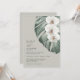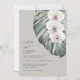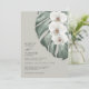 Apportez votre vision mariage de rêve à la vie avec ce design unique tout-en-un de faire-part de mariage tropicaux. Il dispose d'un trio d'élégantes orchidées blanches et d'une belle feuille de Monstera en aquarelles peintes sur un arrière - plan vert sauge clair avec votre site mariage QR code sur le dos. Le fait d'avoir votre code QR du site mariage au verso de l'invitation permet à vos invités d'envoyer facilement leur RSVP et de trouver des détails importants sur votre jour de mariage. Le design est à la fois simple et élégant, avec un look minimaliste dynamisé par les éléments botaniques tropicaux. Cette invitation est un choix merveilleux pour les mariages côtiers, les mariages de destination ou même les mariages de ville qui utilisent un thème tropical magique.