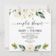 Cette invitation à la douche pour les couples est décorée de pivoines blanches et de feuilles verts.