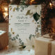 Célébrez la saison avec style grâce à cet élégant design de fête de Noël avec des poinsettias en ivoire, une végétation luxuriante d'eucalyptus et des accents d'étoile dorée scintillants. Le thème botanique sophistiqué crée une atmosphère chaleureuse et festive, parfaite pour des vacances en famille et entre amis.