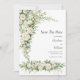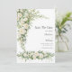 Lovely watercolor white roses, cream florals with greenery wedding save the date card invitation with editable lines on the front and a QR code for you to enter your wedding website on the back of the card. Classic and Traditional