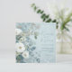 White Roses Hellebores Silver Eucalyptus floral wedding invitation featuring elegant calligraphy script modern watercolor flowers frosty pale blue background and snowflake details