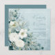 White Roses Hellebores Silver Eucalyptus floral wedding invitation featuring elegant calligraphy script modern watercolor flowers frosty pale blue background and snowflake details