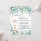 Pour le 1er anniversaire du bébé. Un arrière - plan blanc. une petite petite girafe mignonne, des fougères à l'eucalyptus et des fougères boisées. Personnalisez et ajoutez le nom et les détails du parti. Texte : Wild One