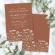 The background is a warm burnt orange or terracotta on both sides, with the text in elegant dark gray fonts. Handwritten script blends with modern serif typography for a clean, contemporary feel. The muted floral palette complements a variety of wedding styles, from rustic outdoor gatherings to chic metropolitan events.