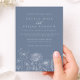 The airy layout and soft periwinkle blue background create a calm, elevated aesthetic, while the subtle floral border adds just the right amount of detail without overwhelming the design. The reverse side includes a personalized monogram and date, offering a thoughtful, keepsake-worthy finish.