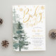 Un bébé est en route et il fait froid dehors ! Jetez un merveilleux baby shower à thème d'hiver avec cette invitation personnalisée. Le design comprend une police de script de calligraphie moderne, des flocons de neige et des arbres de forêt d'aquarelle. Personnalisez facilement cet invitation en utilisant les outils de modèle en ligne. PAS GOLD FOIL