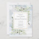 Doté d'une douce verdure feuille d'aquarelle sur un arrière - plan de givre hivernal, cette simple invitation de fête botanique moderne peut être personnalisée avec vos détails spéciaux de fête de fiançailles, avec votre photo au verso. Conçu par Thisisnotme©
