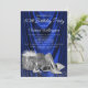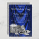 Invitation de fête d'anniversaire en bleu royal et en argent pour femmes avec de jolies chaussures à talon haute en argent, bouteille de parfum et cadeaux sur un bel arrière - plan satin bleu royal. Cette invitation de fête d'anniversaire de famille royale bleu est facilement customisée pour votre événement en ajoutant simplement les détails de votre événement.