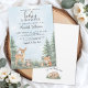 Celebrate the parents-to-be with this sweet woodland-themed design featuring centered text and a soft blue watercolor background that looks like the sky. “Baby Shower” appears at the top, with your event details displayed neatly in the center for a clean, modern look.