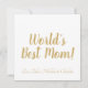 World's Best Mom personnalisées script personnalisé texte élégant carte de voeux mignonne. Texte en faux or entièrement personnalisable, arrière - plan solide blanc. Grand cadeau pour la Fête des Mères vous pouvez customiser le texte du bas avec les noms des membres de votre famille, enfants, enfants, etc