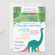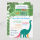 Cute, unique, silhouette de dinosaure turquoise en combinaison avec des lettres de texte colorées, lumineuses et joyeuses. Une adorable invitation au 3ème anniversaire, moderne et tendance pour la fête d'anniversaire du petit garçon. Jeune, sauvage et trois ! Tous les éléments graphiques sont gratuits pour le changement !
