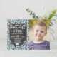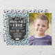 Cette mignonne invitation de troisième anniversaire a un thème "Jeune, Sauvage et Trois". L'invitation photo comprend du lettrage à la main, un panneau rustique de tableau noir et un motif de piste animale. Personnalisez avec les détails de votre fête et une photo de la fille ou du garçon d'anniversaire.