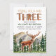 Cool aquarelle chevreuil rustique jeune sauvage et trois garçons 3ème anniversaire invitation.