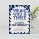 Invitation Young Wild & Three Retro Blue Boy 3rd Birthday