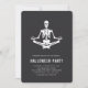Une éffrayante invitation chic à la fête d'Halloween mettant en vedette un squelette amateur de yoga dans une pose de lotus. Personnalisez avec les détails de votre fête d'Halloween en dessous.