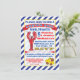 Style cool et affiche moderne Lobster Boil Invitations avec homard rouge vif, maïs sur le berceau, pommes de terre et typographie amusante sur un arrière - plan rayé bleu. Illustration tirée à la main par McBooboo. Idéal pour les 4 juillet, les retrouvailles en famille ou un jardin barbecue.