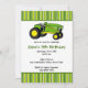 Personnalisez cette invitation unique à la fête d'anniversaire Green Tractor avec des rayures et un tracteur vert et jaune. Copyright © 2011-2013 Kristen S., Invitation Expressions, Tous droits réservés.