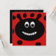 Un design amusant et simpliste pour les bogues dame parfait pour la fête d'anniversaire de votre enfant sur le thème de la coccinelle. Le design présente un arrière - plan rouge vif avec des taches noires. Au centre se trouve une face de coccinelle ovale noire avec un grand, large, grin rempli de dents et de grands yeux de type googly. Ce design de coccinelle, précieux et amusant, est simple mais festif.