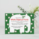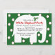 Invitation vos collègues ou amis à votre prochaine fête des éléphants blancs avec ces invitations colorées. Un grand éléphant blanc surplombe un arrière - plan vert avec des pois blancs en tissu rouge.