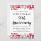 Célébrez votre anniversaire d'or avec style grâce à nos invitations florales modernes à la fête du 50e anniversaire. Doté d'élégantes fleurs d'aquarelle, ce design est le parfait mélange de classique et de contemporain. Impressionnez vos invités avec cette invitation sophistiquée en commémorant 50 belles années avec votre couple bien-aimé.