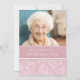 Photo sur mesure 85e anniversaire invitations à des fêtes en rose rose élégant et blanc floral et rayures motif. Ajoutez votre nom, votre photo et les détails de votre fête d'anniversaire pour une invitation unique et élégante.