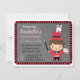 Vous planifiez une fête d'anniversaire magique pour une fille d'anniversaire ? Invitation vos invités avec cette mignonne invitation anniversaire de enfant. Il y a une petite fille habillée d'un costume de magicien rouge de gilet de tailleur et de cravate d'arc noir avec une baguette magique dans une main et jouant aux cartes d'as de pique, d'as de coeurs, d'as de clubs et d'as de diamants de l'autre côté. L'casquette qu'elle porte a un petit lapin blanc de lapin qui en sort. arrière - plan gris avec étoiles et étincelles et bordure décorative à rayures noir et rouge.